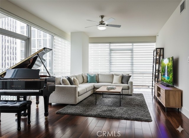 Experience elevated urban living in this southwest-facing 3-bedroom, 3-bathroom corner unit on the 10th floor of Solair, a premier high-rise at Wilshire and Western. Spanning approximately 1,700 square feet, this residence offers floor-to-ceiling double-paned windows that flood the space with natural light and provide sweeping views of the Los Angeles skyline. The open-concept layout seamlessly connects the living, dining, and kitchen areas, ideal for both daily living and entertaining. The kitchen has been recently updated with new quartz countertops, a modern sink, microwave, and gas cooktop, while retaining the original contemporary European-style cabinetry. An individual water shut-off valve has also been installed for added convenience. The primary suite features a walk-in closet and a fully remodeled en-suite bathroom adorned with upscale finishes. The second bedroom also boasts its own remodeled private en-suite, while the third bedroom is conveniently located near a hallway bathroom with a walk-in shower, perfect for guests or as a home office. Additional highlights include two assigned parking spaces in a secure resident garage. Residents enjoy access to a 7th-floor resort-style amenity deck featuring a heated swimming pool, spa, private cabanas, BBQ area, and a dedicated dog park. Indoor amenities include a well-equipped fitness center, elegant residents' lounge, stylish clubroom, business center, conference rooms, and an on-site coffee bar. The building offers 24-hour concierge service, controlled access, and on-site security. Situated above the Purple Line Metro station and close to HMart, CVS, Ralphs, and Koreatown's vibrant dining and shopping scene, this home places you in the heart of it all. Ground-level retail and dining options include Starbucks, Paris Baguette, a beauty salon, and a Korean BBQ restaurant, all just steps from the lobby. Don't miss the opportunity to own this exceptional unit in one of LA's most desirable high-rise communities.