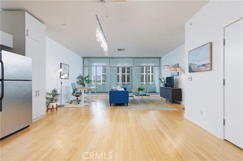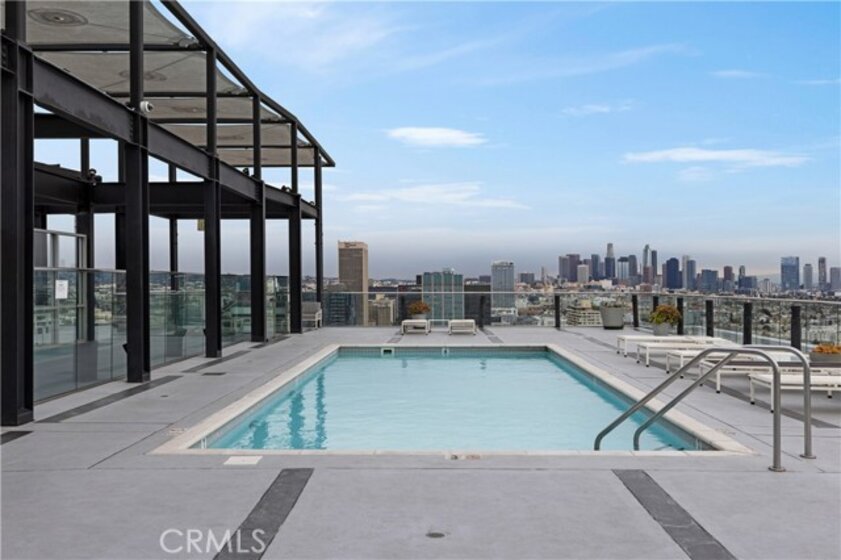 Discover refined living in the largest one-bedroom unit at The Mercury, a stunning adaptive-reuse loft-style condo situated on the prestigious Wilshire Corridor. Originally an office building, this remarkable conversion offers breathtaking views of Los Angeles complemented by luxury amenities. Step inside to find abundant natural light streaming through a striking wall of windows, illuminating an open-concept living space with high ceilings. The sophisticated design features high-end sliding glass doors that seamlessly separate the sleeping area, integrating style and privacy. The modern kitchen enhances the unit's flow, perfect for both everyday living and entertaining. Additional features include an expansive walk-in closet, in-unit laundry for convenience, and secured parking for peace of mind. The Mercury enhances your lifestyle with a rooftop terrace boasting a swimming pool, a state-of-the-art fitness center, and an outdoor lounge area offering incredible views, providing the perfect venue for relaxation and leisure.