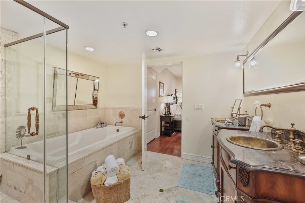 Stunning Tri-Level Condo in Los Feliz! Discover the charm and comfort of this exceptional tri-level condo nestled in the heart of Los Feliz. This spacious home boasts two master suites, 2.5 baths, and a mezzanine, all within a beautifully maintained, gated Spanish-style complex surrounded by multi-million dollar homes. As you enter, you're welcomed by an elegant courtyard with a central fountain, setting the tone for this serene retreat. The main level features an open-concept living space with soaring high ceilings, a well-appointed kitchen, a dining area, and a convenient powder room. The upper level offers a private mezzanine, a spacious master bedroom with a balcony, and an en-suite bath with a tub and shower, along with a laundry area for added convenience. The lower level is a true retreat, featuring a second master suite with a cozy fireplace, a walk-in closet, an additional partial closet, and a luxurious en-suite bathroom with dual sinks, a separate shower, and a Jacuzzi tub. This level also includes a covered private patio and storage space, perfect for relaxing and enjoying the fresh air. Don't miss this rare opportunity to own a stunning home in one of Los Feliz's most sought-after locations! A must-see!
