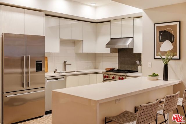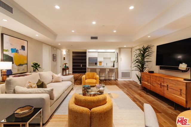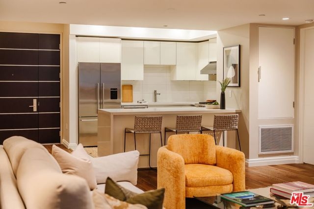 Introducing 441 S. Barrington, Unit 109, perfectly positioned in the heart of Brentwood. This sophisticated two-bedroom, two-and-a half-bath condo features a thoughtfully designed open layout with warm wood flooring and contemporary finishes throughout. The gourmet kitchen is appointed with top of the line appliances, sleek cabinetry, and a modern aesthetic that connects seamlessly to the dining and living areas. The unit is equipped with washer/dryer, spacious bedroom and bathrooms, a private patio and high-end finishes and appliances throughout. The Cosmopolitan BW is an intimate collection of 45 modern luxury residences that blend style, comfort, and convenience. Residents enjoy a curated selection of amenities, including a 24-hour doorman with secure private access, a state-of-the-art fitness center, heated swimming pool, outdoor lounge with fire pit, and a tranquil meditation garden. Just moments from Barrington Recreation Center, local cafes, and neighborhood shops, this unit offers an exceptional balance of sophistication, ease, and desirable Westside living.