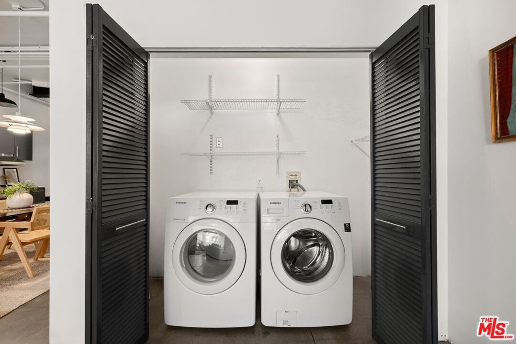 Sophisticated loft defined by its dramatic scale, situated in the highly sought after Molino Street Lofts - in the center of Downtown LA's Arts District. A dapper updated 1600 sqft space with original architectural elements that harken to its past industrial life. Newer kitchen, new stainless steel appliances, polished concrete floors, in-unit washer/dryer, towering black I-Beams, 12ft ceilings, and a huge picture window with a sneak peak of the Historic 4th St bridge. A short walk to the many Arts District restaurants, bars, coffee shops and boutiques; including Manuela at Hauser Wirth, SoHo Warehouse, Bavel, Bestia, Girl and The Goat, Kodo and Verve Coffee. Close to USC, SCI-Arc, Arts District dog park, and transportation. Come fall in love!