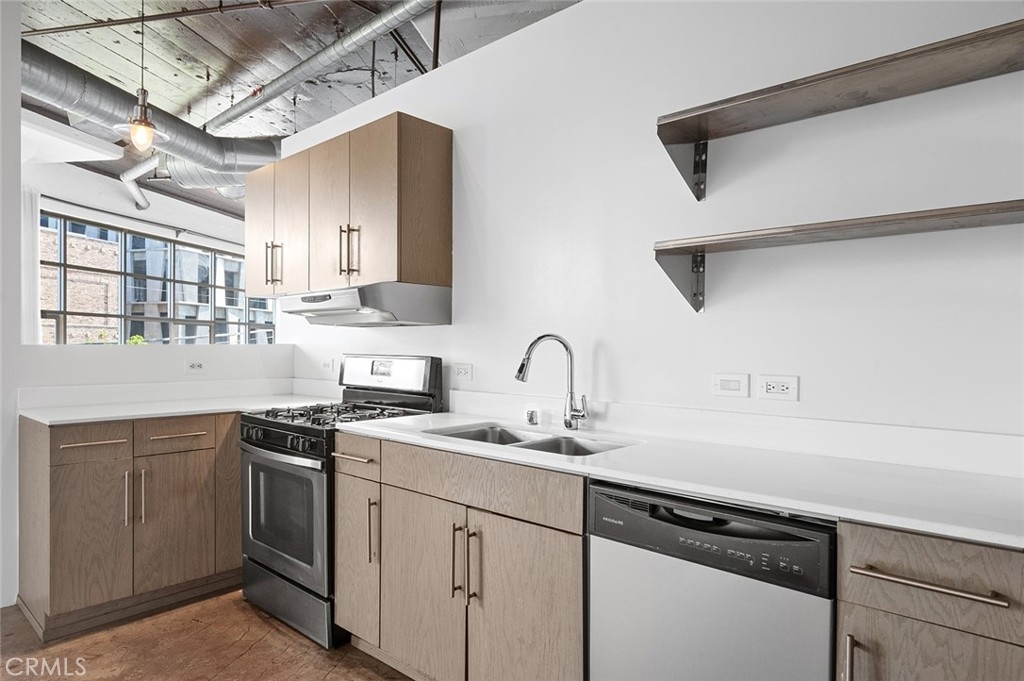 Step into the vibrant heart of Los Angeles' iconic Arts District with this striking live/work loft at 530 Molino Street #202. Nestled within a beautifully repurposed 1920s warehouse, this second-floor residence perfectly merges historic industrial charm with sleek, modern living. The open-concept layout is framed by soaring 12-foot ceilings and an impressive 44-foot wall of windows, flooding the space with natural light and creating an expansive, airy ambiance ideal for both creative pursuits and everyday comfort. Whether you're a designer, photographer, or entrepreneur, this flexible loft space offers the ultimate canvas for your lifestyle. Polished concrete floors, granite countertops, and tasteful upgrades throughout lend a sophisticated, contemporary vibe to the home. The modern kitchen includes a built-in dishwasher and gas range, complemented by an in-unit laundry area with a gas dryer for added convenience. The loft's smart, open design allows for endless possibilities—entertain, relax, work, or create in one fluid, inspiring space. Beyond the unit, Molino Street Lofts delivers exceptional amenities including a rooftop pool and sun terrace with panoramic city views, a fully equipped gym, a serene lounge area, and controlled access with a virtual key entry system. You'll also enjoy one assigned gated parking space, and the entire building maintains its historic character while offering modern security and comfort. Located just steps away from the best of the Arts District, you’ll find yourself immersed in a lively, walkable community known for its culture, culinary excellence, and creative energy. Enjoy world-class dining at local favorites like Manuela, Urth Caffé, Zinc Café & Market, Girl & the Goat, and Wurstküche. Explore the nearby galleries, boutique shops, and vibrant nightlife—or take a quick stroll to the Southern California Institute of Architecture (SCI-Arc) and the Arts District Dog Park. Plus, the new $60 million Sixth Street PARC project is well underway, promising exciting new public spaces, a performing arts plaza, skate park, sports fields, and more. Perfectly positioned with easy access to freeways and public transit, and just minutes from USC and Little Tokyo, this is not just a loft—it's a lifestyle. Discover the ideal fusion of art, architecture, and convenience at 530 Molino Street #202, a rare offering for the discerning buyer seeking inspiration in every corner. Call your Realtor to schedule a tour and make an offer today!