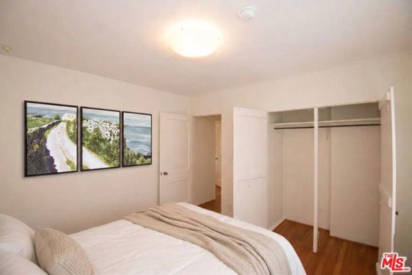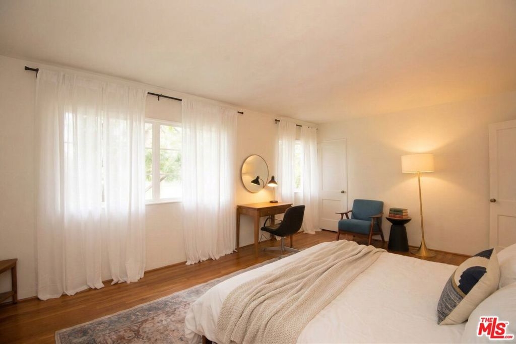 Rare Village Green townhome positioned directly on the central green with expansive treetop views and a layout that lives like a single-family home.The oversized primary bedroom looks out across the mature canopy of the main green, creating a peaceful elevated view rarely available in the community. A second bedroom is also generously sized, and the home offers exceptional storage with large closets throughout.Original vintage tile in the bathrooms remains in remarkable condition a rare preservation detail including a main-level powder room, an uncommon feature in the Village Green. The layout includes a formal dining room and a large enclosed patio framed by serpentine brick walls and thoughtfully designed hardscaping that creates multiple outdoor spaces.Parquet floors run throughout the main level with hardwood upstairs, all beautifully maintained. A brand new furnace has recently been installed.Located in the interior of the Village Green, the home offers one of the most sought-after settings in this National Historic Landmark community surrounded by mature trees, open green space, and the architectural character that defines the property.68 acres of lush, park-like grounds. National Historic Landmark designation. 24-hour security. On-site maintenance and landscape crews. Community events are held throughout the year. Walking distance to the Metro. Minutes from downtown Culver City. Centrally located to all of Los Angeles. Some of the photos are virtually enhanced.