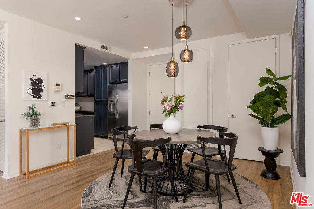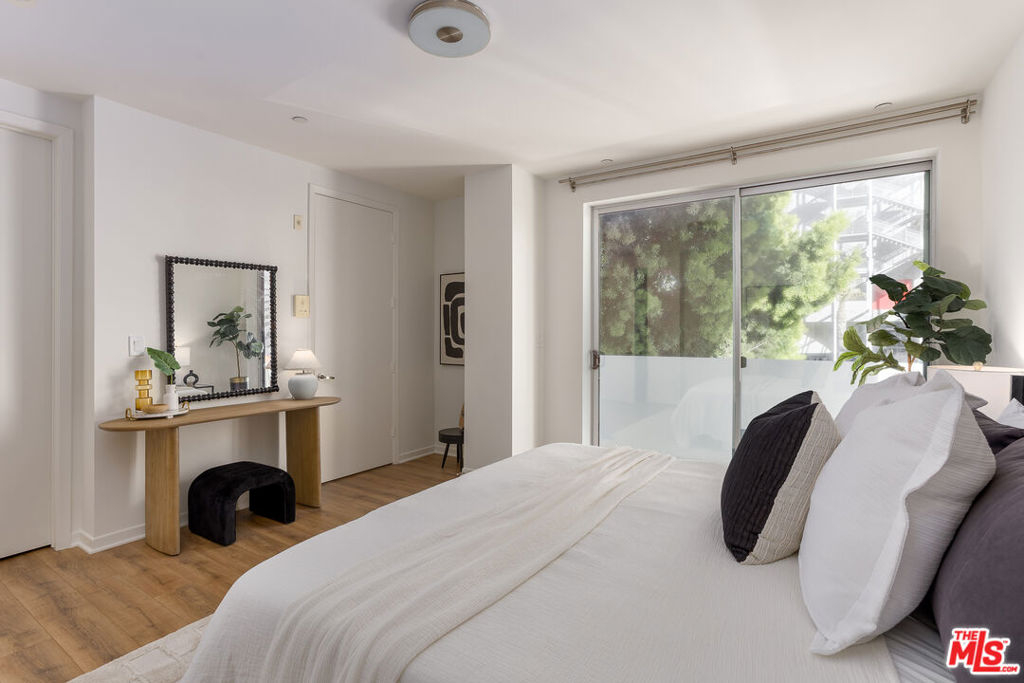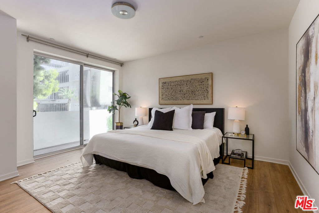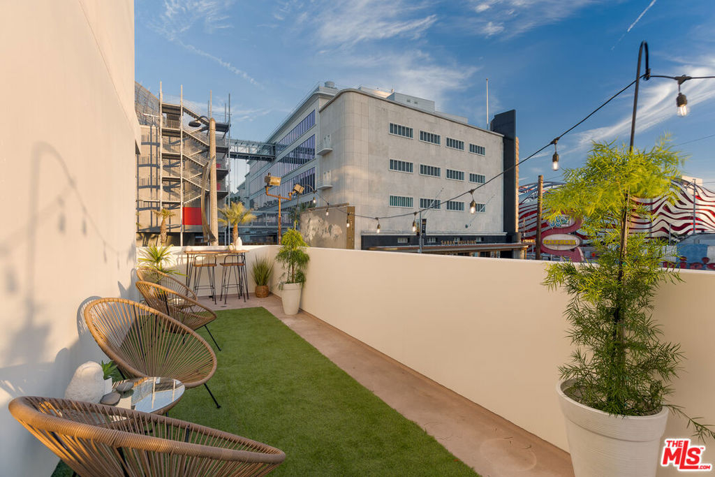 Gorgeous contemporary Miracle Mile condo located on one of LA's most iconic corners. Fairfax and Wilshire, across from LA's "Museum Row" which includes the LACMA, the Academy Museum, Petersen Automotive Museum, "The David Geffen Galleries", and the new Fairfax and Wilshire metro stop. The Grove and 3rd Street dining and shopping are only a few blocks away. The building was recently renovated, and the unit itself flows wonderfully and offers a spacious living and dining area. It is the only unit in the building with an enormous wrap-around balcony, with entrances from every room. Enjoy your morning coffee or a California sunset from your private outdoor living lounge. This 2-bedroom, 2-bath unit has been thoughtfully updated with new LVP floors, upgraded appliances, and fresh designer paint throughout. The primary bedroom offers a generous walk-in closet and an opulent en-suite bathroom with a marble bath/shower. The 2nd bedroom and bath are located on the opposite side of the unit, giving your guests optimal privacy. There is also a stacked washer and dryer in the unit, double-pane windows and doors, and two secure tandem parking spaces. The building has a rooftop deck with BBQ and 365-degree views of the city. Other amenities include a Butterfly MX access system, an EV charging station, and an Amazon locker for packages. Don't miss this one, will NOT last!