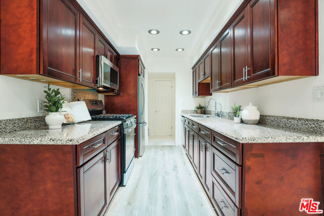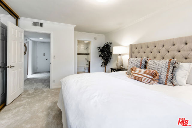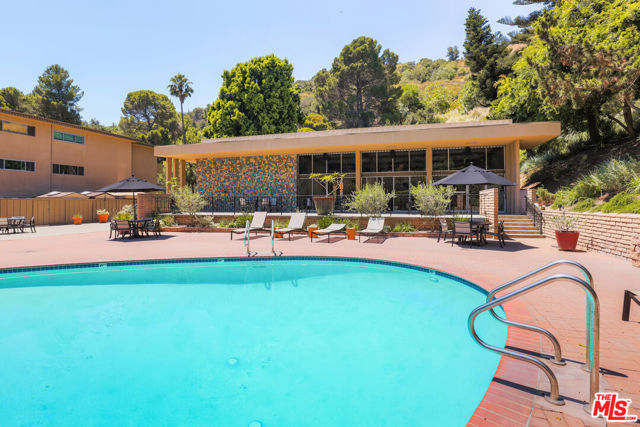 Beautifully renovated 2-bedroom, 2-bath Corner End-Unit with Office and wrap-around balcony. New floors, stainless steel appliances, solid wood cabinetry, Central AC, recessed lighting, extra storage and custom shutters. A cleverly converted pantry offers a private office with French door and built-in bookshelves. Enjoy your morning coffee on the wrap-around balcony overlooking a peaceful, tree-covered hillside where deer and rabbits wander. Resort-style amenities include pools, spa, fitness center, sauna, tennis and pickleball courts, a dog-friendly parklet, and clubhouse with ping pong, billiards, TV lounge, and kitchen. Steps from laundry, fitness center, saunas and pool. Lush landscaping, walking paths, and impeccably maintained grounds surround you with nature. Just off the Cahuenga Pass below Mulholland Drive, public transportation, minutes from the 101, Runyon Canyon, Hollywood and Highland, Universal City Walk and Hollywood Bowl. HOA dues cover water, sewer, trash, Earthquake insurance, side by side parking spaces, extra storage and high-speed internet.