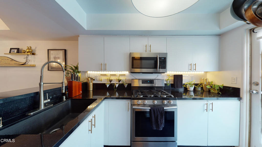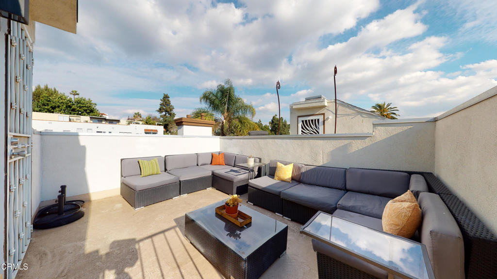 This contemporary Mediterranean Silverlake townhome is charming and move-in ready! The lovely townhome has been tastefully remodeled. The first floor has a convenient half bathroom. The remodeled kitchen has granite countertops, white cabinets, stainless steel appliances, and leads to an enclosed patio. The spacious dining area is perfectly located between the kitchen and living room. The bright living room has multiple windows, wood-like floors, and a cozy fireplace. The second floor has two spacious bedroom suites with their own bathrooms and plenty of closet space. The largest bedroom has a custom Elfa closet system and has access to a spectacular rooftop terrace with city views. The combination washer and dryer is located in an upstairs hallway closet. There are two assigned tandem underground parking spaces with a storage shed and a community storage area. This 16 unit complex offers a gated entrance, security cameras, guest parking, spa, community room, and dog run. The home is conveniently located nearby parks, shops, restaurants and freeways.