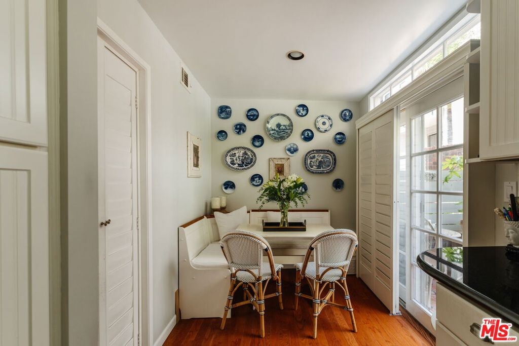 Offered for the first time in 37 years, this elegant townhome at 8611 Burton Way blends timeless character with modern comfort, ideally situated between Beverly Hills and West Hollywood. A welcoming living room with fireplace opens to a private patio, creating an inviting indoor-outdoor flow. The formal dining area connects seamlessly to the updated kitchen, appointed with stainless steel appliances, a subway tile backsplash, and a charming breakfast nook perfect for both everyday living and casual gatherings. A discreet wet bar adds a touch of old-Hollywood charm, ideal for entertaining. Upstairs, vaulted ceilings, plantation shutters, and abundant natural light enhance the spacious bedrooms. The serene primary suite features a comfortable sitting area, custom built-ins, and a spa-inspired bath with dual vanities, a soaking tub, and a glass-enclosed shower. Additional bedrooms offer flexibility for guests, family, or a home office. A versatile den provides the perfect retreat for a media room, study, or library. Throughout the home, thoughtful details including hardwood floors, custom shelving, mirrored accents, and classic finishes create a warm and sophisticated atmosphere. Ideally located near world-class shopping, dining, and entertainment, this residence offers a rare opportunity to enjoy the best of Beverly Hills and West Hollywood living in a home that has been cherished for decades.